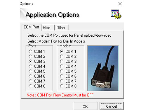 - Trong menu File, nhấp vào Optiom và đặt cổng COM thành cài đặt thích hợp (COM 1-8)